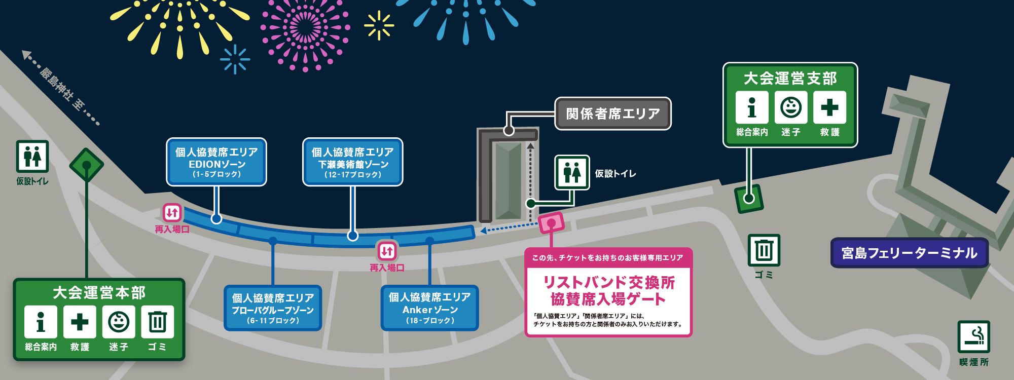 世界遺産嚴島神社でも有名な広島県・宮島で古くから愛されてきた⽔中花⽕⼤会を、次の世代へ伝えていきたいという想いから、地元⾃治体・企業にご協力いただき、新しい形で開催することとなりました。